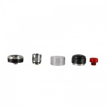 Предшественником новинки является GNOME, который был выпущен в наборе с RX GEN3. Дизайн не претерпел значительных перемен: видоизменилась лишь верхняя часть устройства, которая теперь имеет небольшой выступ. Что касается цветовых решений, то здесь все просто: сам бак черный, а вот дриптип может быть красным, серебристым, голубым и, опять же, черным – в соответствии с цветами боксмода SINUOUS RAVAGE230. При высоте 44 мм и диаметре 25 мм атомайзер весит 57 граммов.
