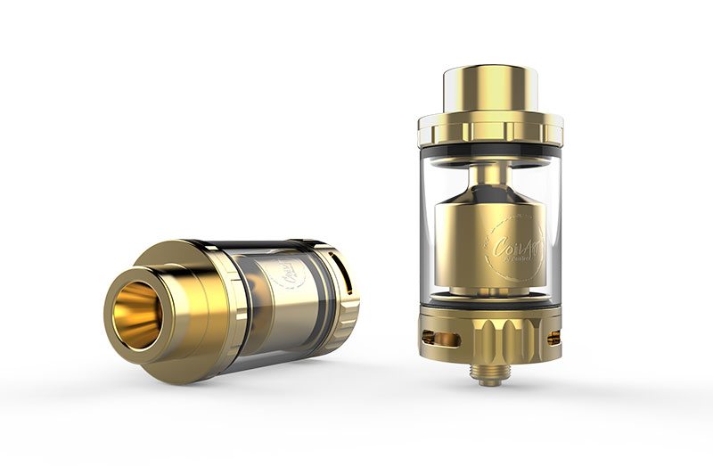 В комплекте идут: сам бак, базы на две и три спирали, дополнительный дриптип, адаптер на 510 дриптип, запасные винты, стекло и о-ринги, Т-образная отвёртка.