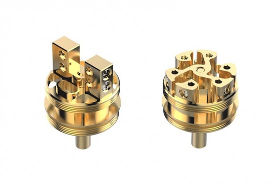 Трехстоечная база на баке практически такая же, как и на дрипке Azeroth. Заметное отличие заключается лишь в том, что база бака меньше по размеру и в ней чередуются щели нижнего обдува и щели укладки ваты. Ножки спиралей устанавливаются таким же образом: сверху и затягиваются винтами сбоку. Не можем не отметить то, что шестигранные винты на этой базе уж очень мелкие. Двухстоечная же база имеет крупные крестовые винты и мощные стойки, и, честно говоря, кажется более надежной и брутальной.