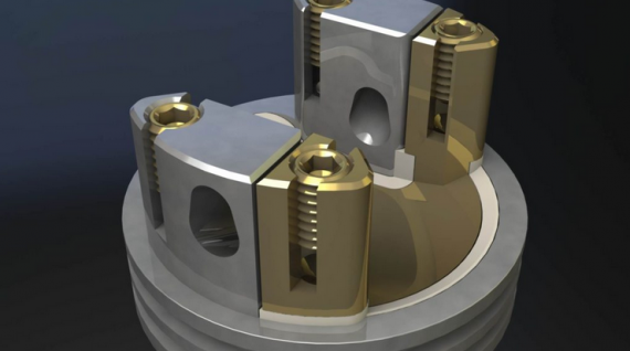 В первую очередь интересно взглянуть на начинку дрипки. Её рабочая поверхность увеличилась, что не может не радовать любителей сложных намоток. Спирали устанавливаются с помощью зажимного механизма. Можно установить как одну спираль, так и две. Их обдув тоже регулируется.