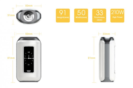 Работает новинка на двух аккумуляторах 18650 и выдает максимальную мощность 210Вт. Есть возможность использовать устройство в режиме Bypass (мехмод). В этом режиме максимальная мощность напрямую зависит от уровня заряда и отдачи тока аккумулятора.